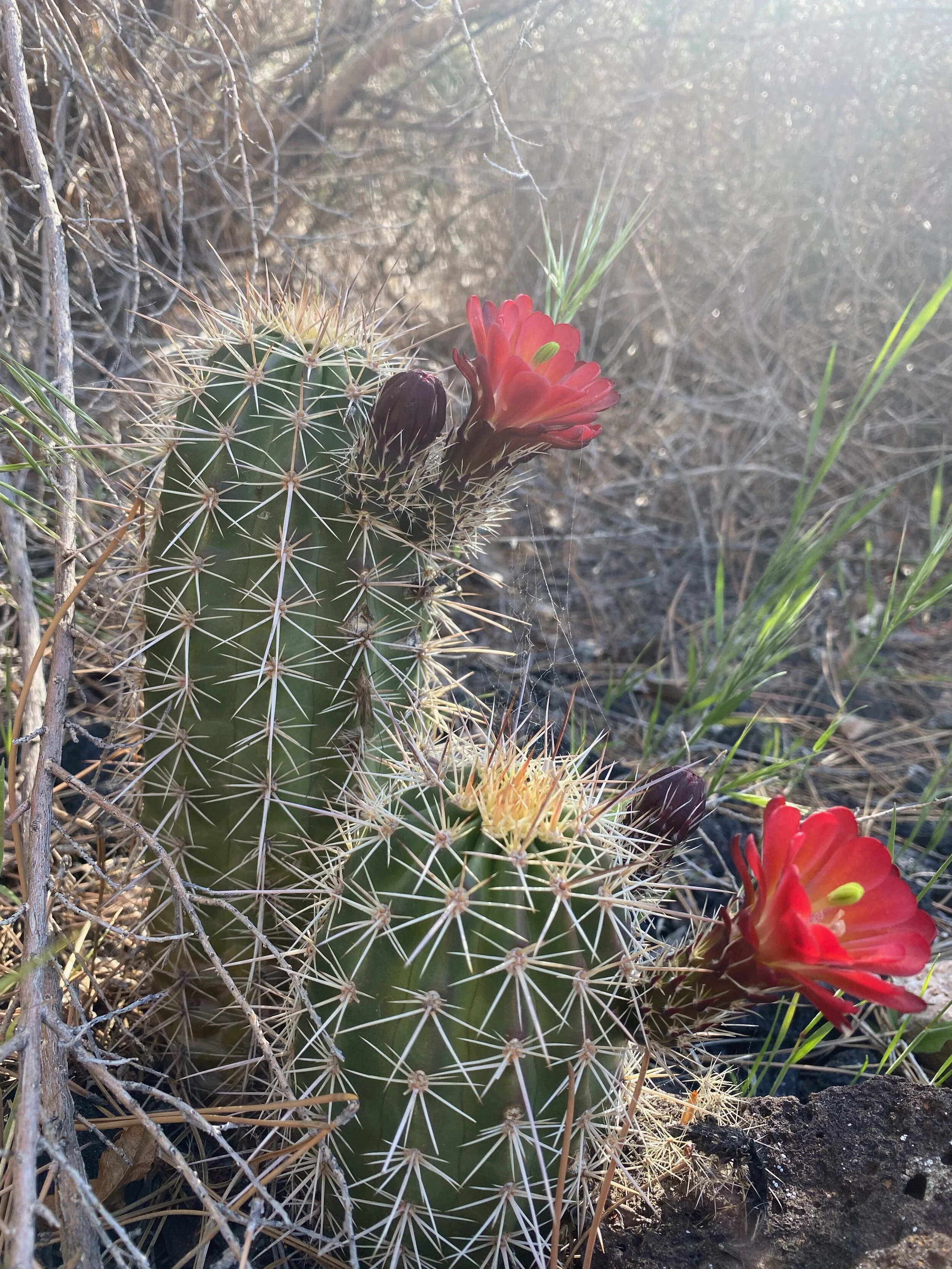A couple of Hawaiian cacti — because of the flower in the ear and the imaginary skirt. I don’t know what the name of this cactus is, okay?